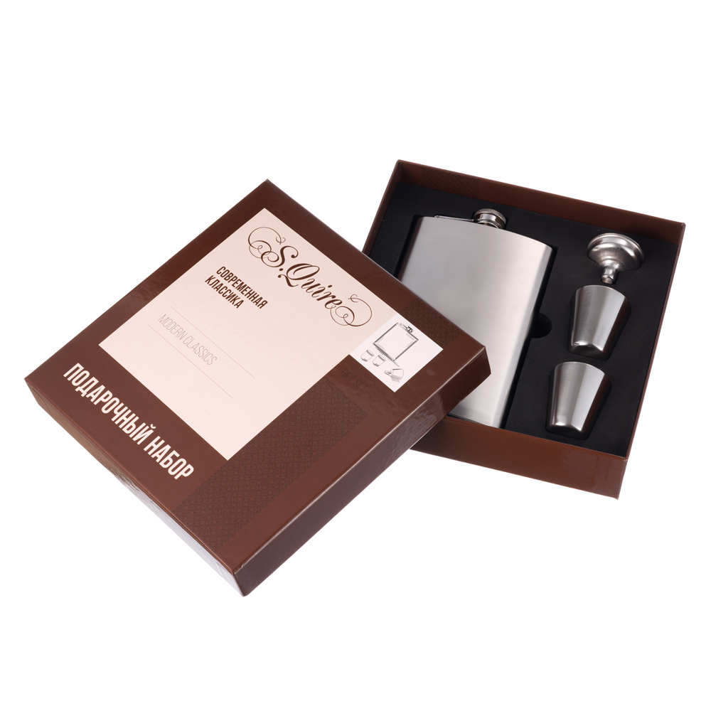 Набор S.Quire фляга 0,27 л, 2 стопки, воронка, сталь, серебристый можно заказать в нашей компании по самой доступной цене от 1 210 рублей.