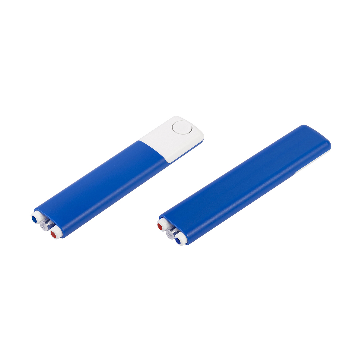 - Две ручки. Размер 12 х d 0,8 см. Одна с классической синей пастой, другая с яркой красной, цветные метки сверху указывают на цвет чернил. Корпус ручки разборный, стержень легко заменить.