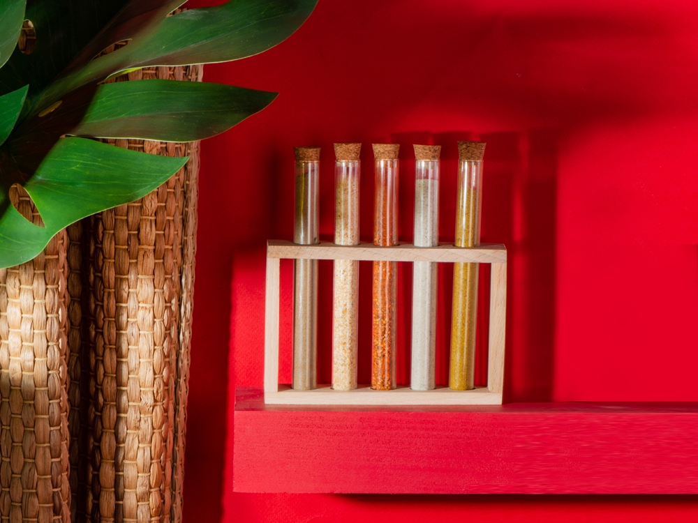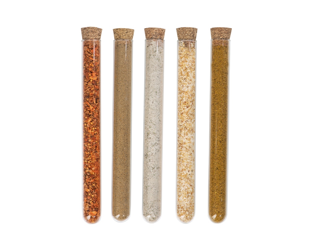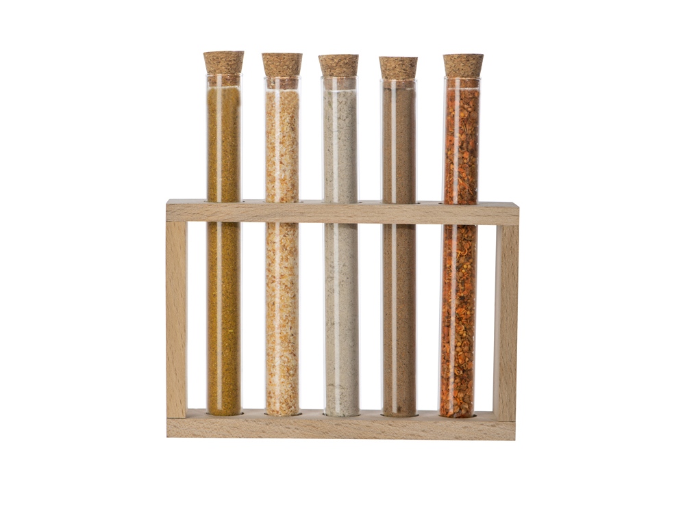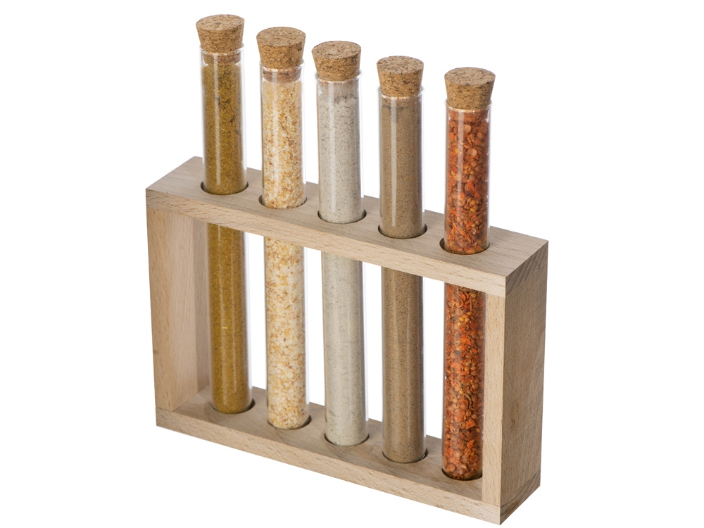 Размер товара (см): подставка- 15 х 3,5 х 10 см, колба со специями- d1,6 х 16