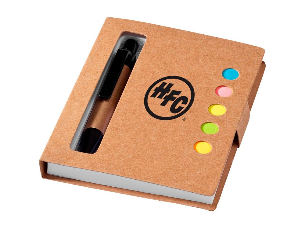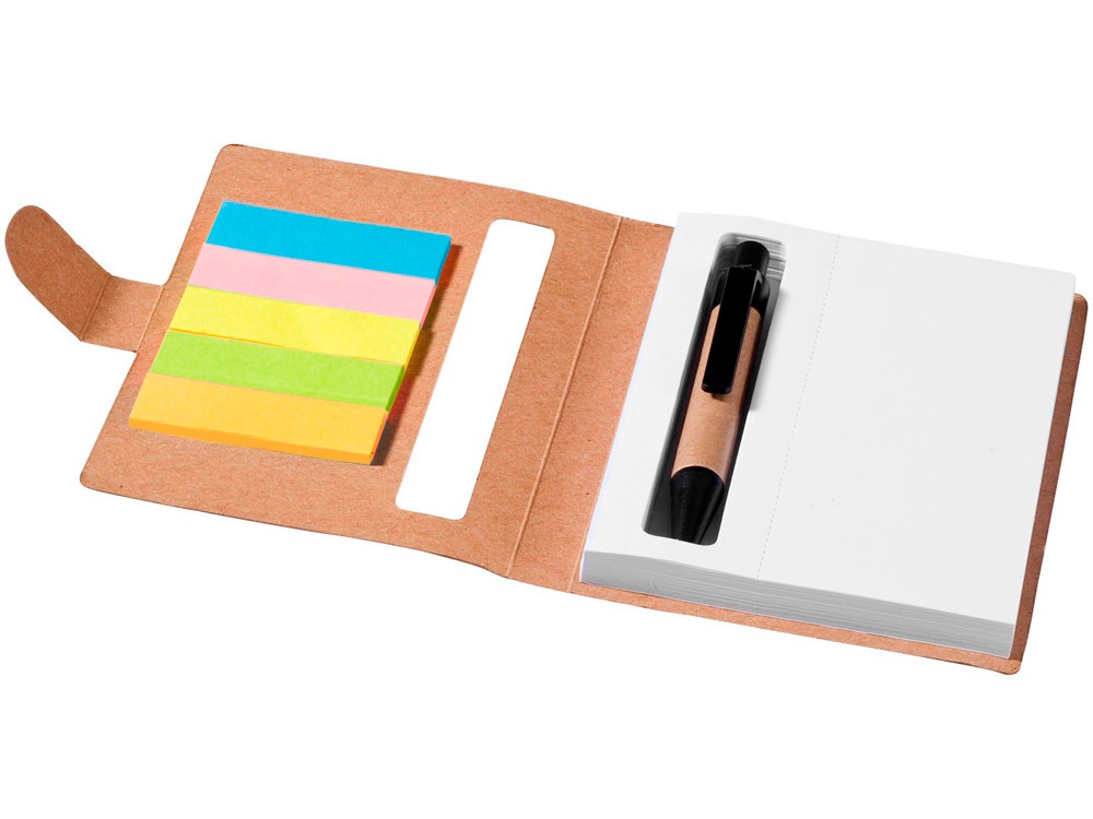 Набор цветных стикеров с шариковой ручкой и блоком из 80 белых отрывных листков. Очень удобный и функциональный аксессуар для офиса, а также отличный промо-сувенир. На обложку из уплотненного картона возможно нанесение логотипа вашей компании.