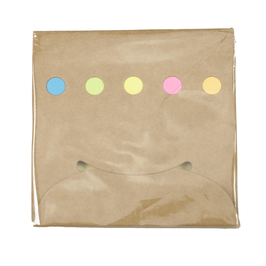 Набор стикеров в крафтовой обложке. Размер 85х84х6 мм. 6 цветов. 20 стикеров каждого цвета с клеевым краем.