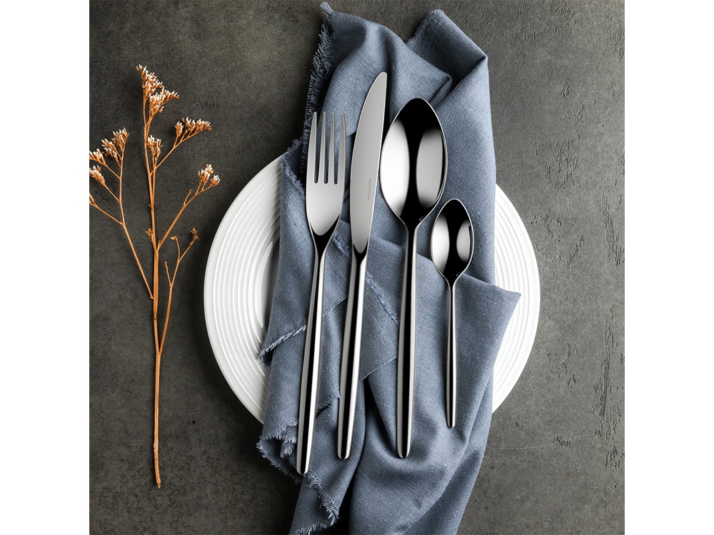 Приборы серии Mia изготовлены из высококачественной нержавеющей стали. Они устойчивы к механическим повреждениям и воздействию любых сред, не меняют вкус блюд и долгое время сохраняют превосходный вид, полученный благодаря высокой степени полировки.