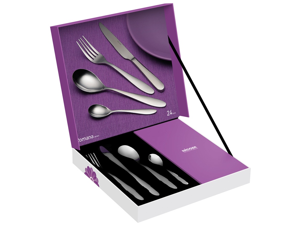Приборы серии Romana изготовлены из высококачественной нержавеющей стали. Они устойчивы к механическим повреждениям и воздействию любых сред, не меняют вкус блюд и долгое время сохраняют превосходный вид, полученный благодаря высокой степени полировки.