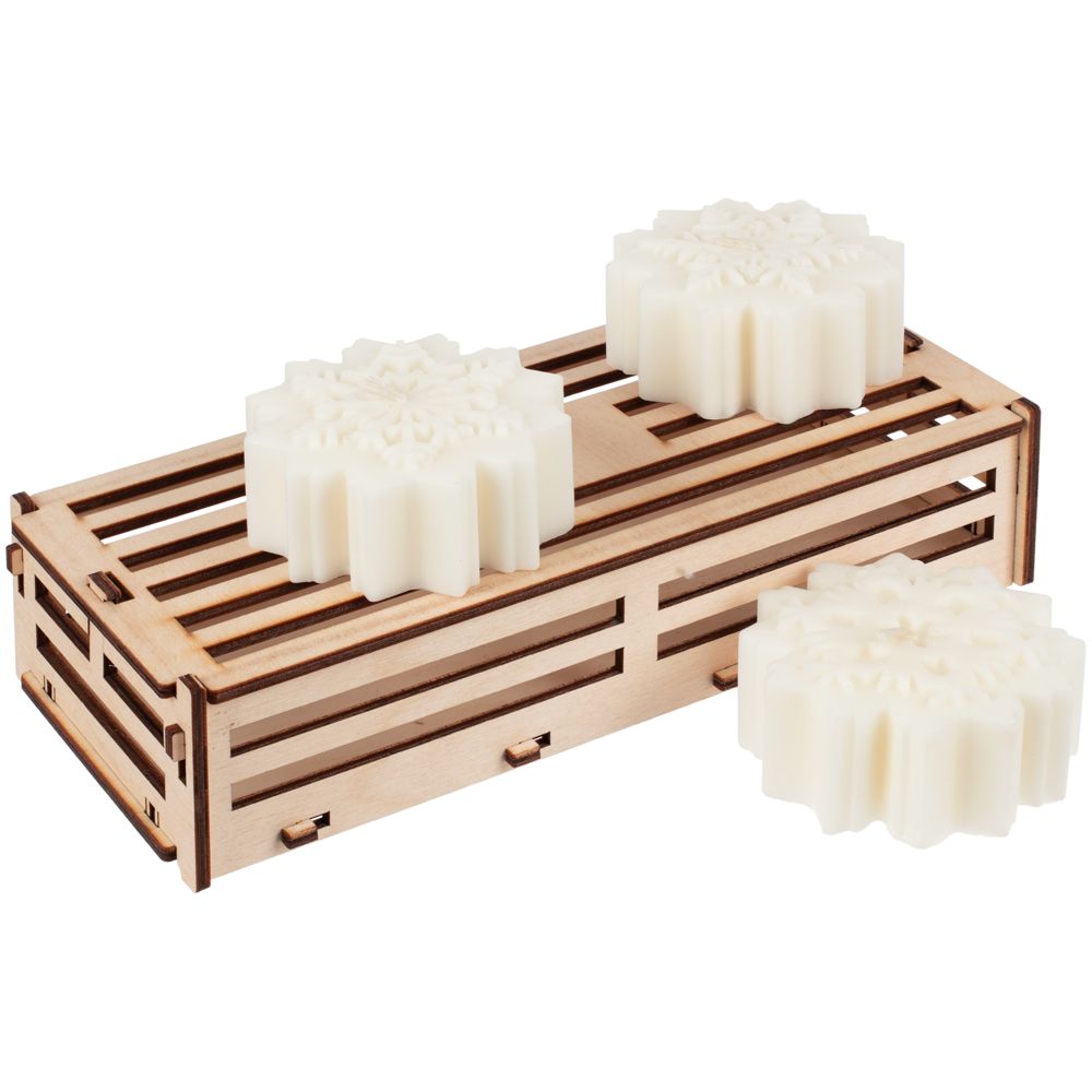 Набор из трех свечей в фанерном ящичке. Каждая снежинка в наборе представлена в своем неповторимом узоре.Штук в коробке: 12 (объем коробки - 0.02366 м3)