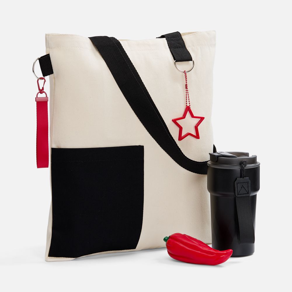 В стильном и удобном шопере собрано все для уверенного дня: термостакан для напитков идеальной температуры поможет поддержать настрой и вовремя пополнить энергию, сквиши-антистресс мгновенно разгрузит голову, а яркие ремувка и подвеска дополнят комплект и легко подстроятся под корпоративный стиль. Опция замены подвески под логотип с помощью 3D-печати позволит сразу заявить о себе и ненавязчиво подчеркнуть уникальность бренда.