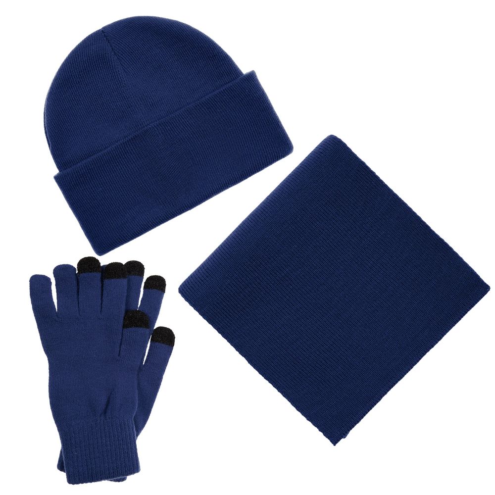 В комплект входят двухслойная шапка с регулируемым отворотом и легкий однослойный шарф из мягкой акриловой пряжи, сохраняющие тепло и защищающие от ветра, а также эргономичные перчатки со специальными токопроводящими волокнами на кончиках пальцев, в которых можно свободно пользоваться смартфоном даже в холодную погоду. Универсальная цветовая гамма и лаконичный дизайн делают набор органичным дополнением к любой верхней одежде.