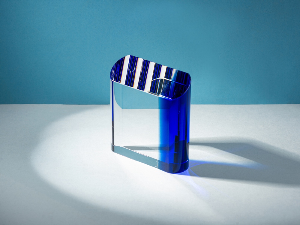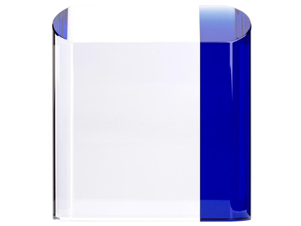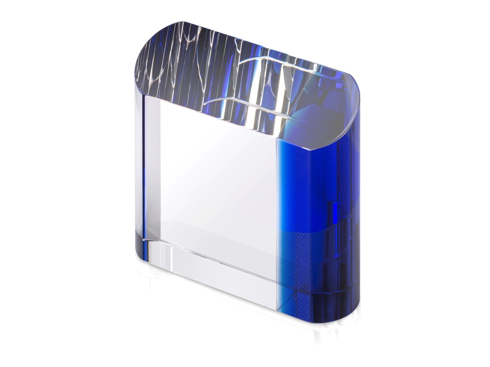 Награда выполнена из прозрачного стекла с синей полосой, которая дает красивые блики на всю поверхность награды. Станет отличным подарком для отличившихся сотрудников и партнеров компании.