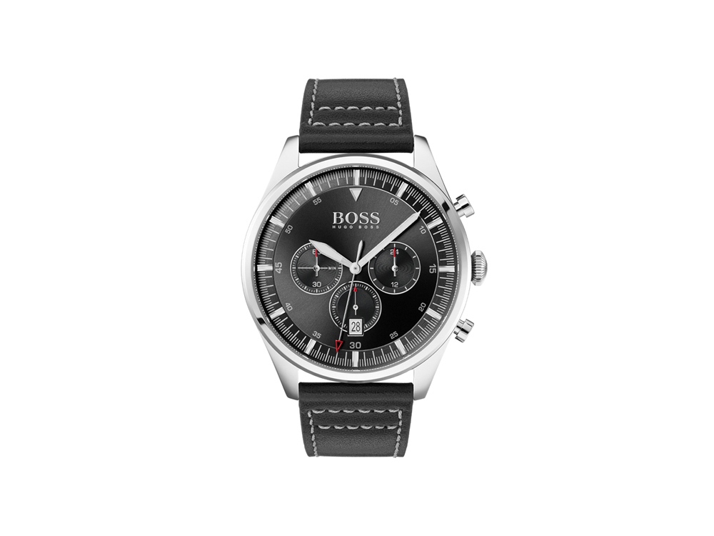 Кварцевый хронограф, корпус из нержавеющей стали 316L, диаметр 44 мм, толщина 10,5 мм, минеральное стекло, черный циферблат sunray, ремешок из натуральной кожи, Водозащита 5 ATM.