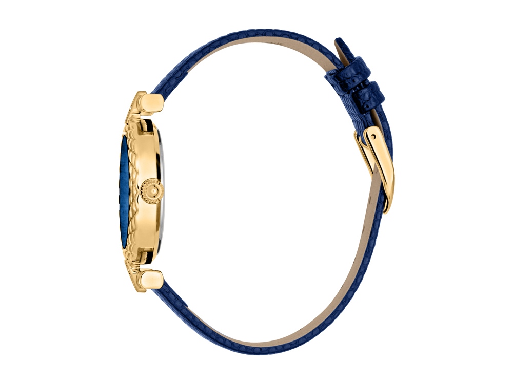 Товар представлен в следующем цвете: Корпус- желтое золото, циферблат- синий, крепление- синий