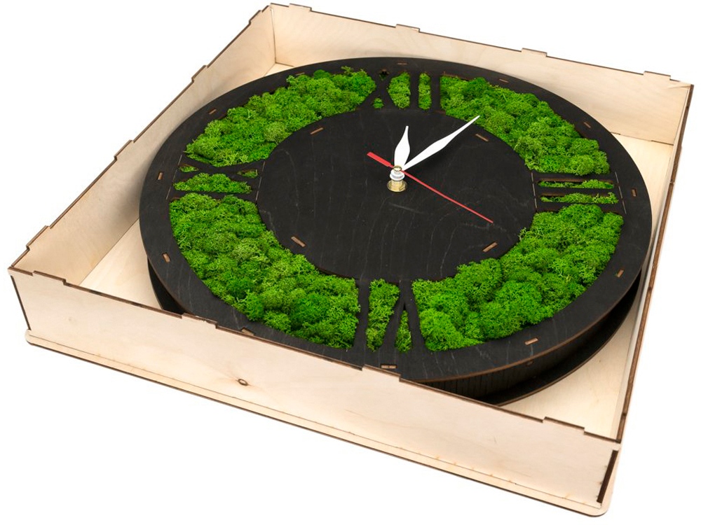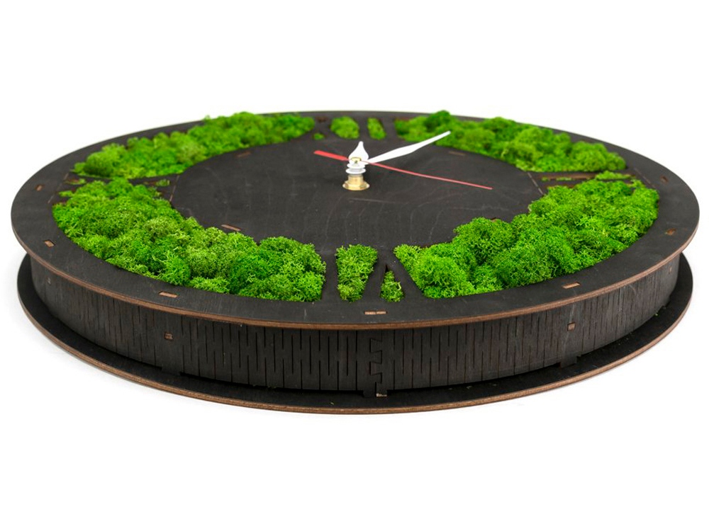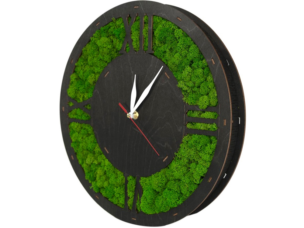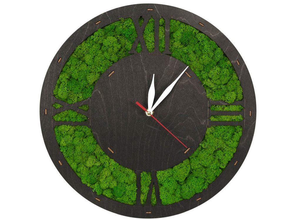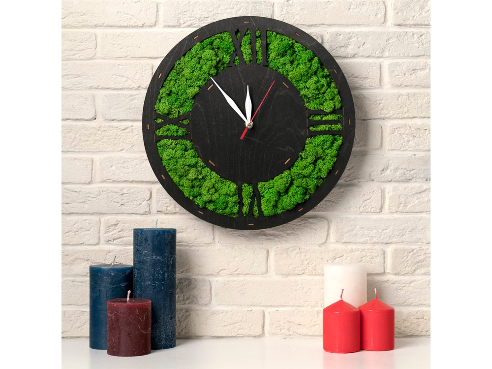 Часы Римские выполнены из дерева. Они изготовлены в трендовом стиле с использованием стабилизированного мха. Он великолепно смотрится и не требует ухода. Такие часы замечательно дополнят ваш интерьер.