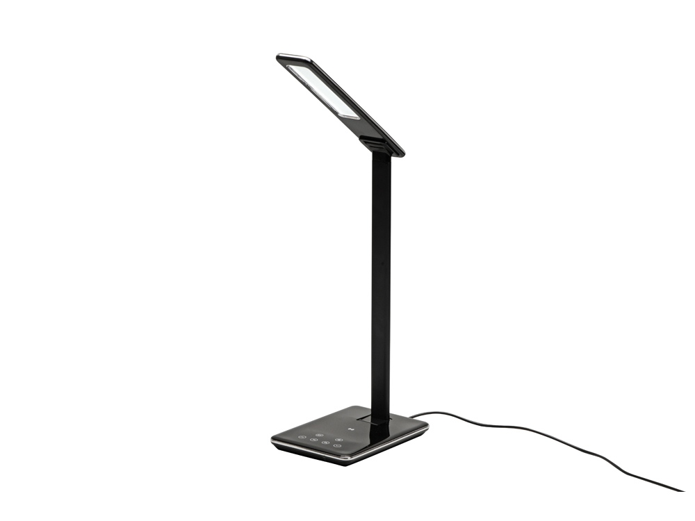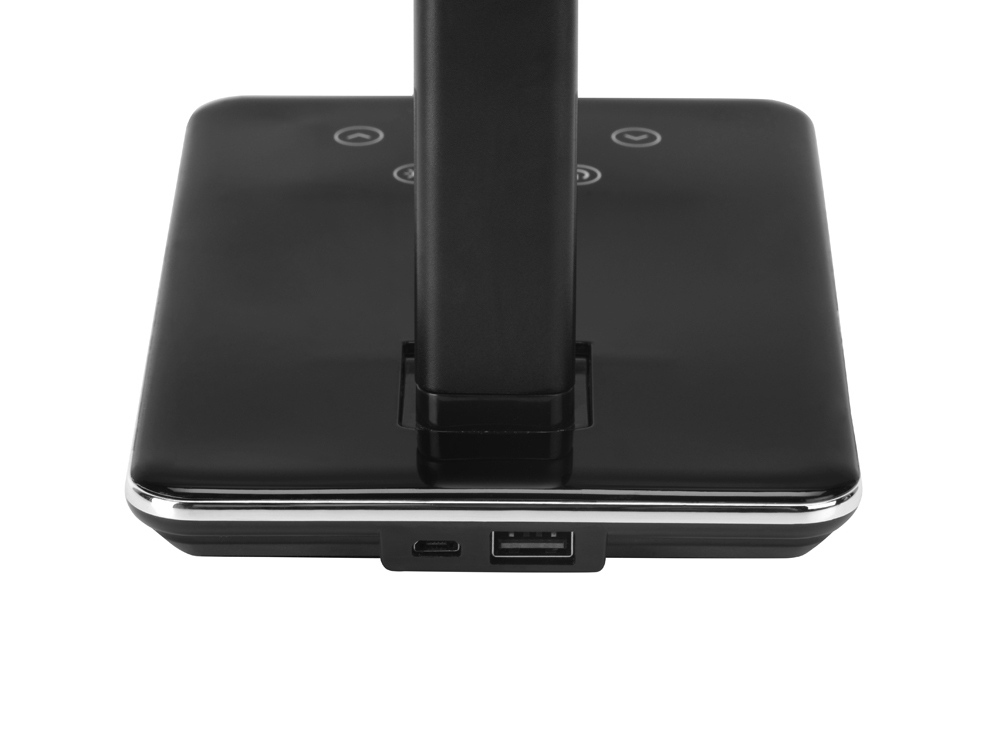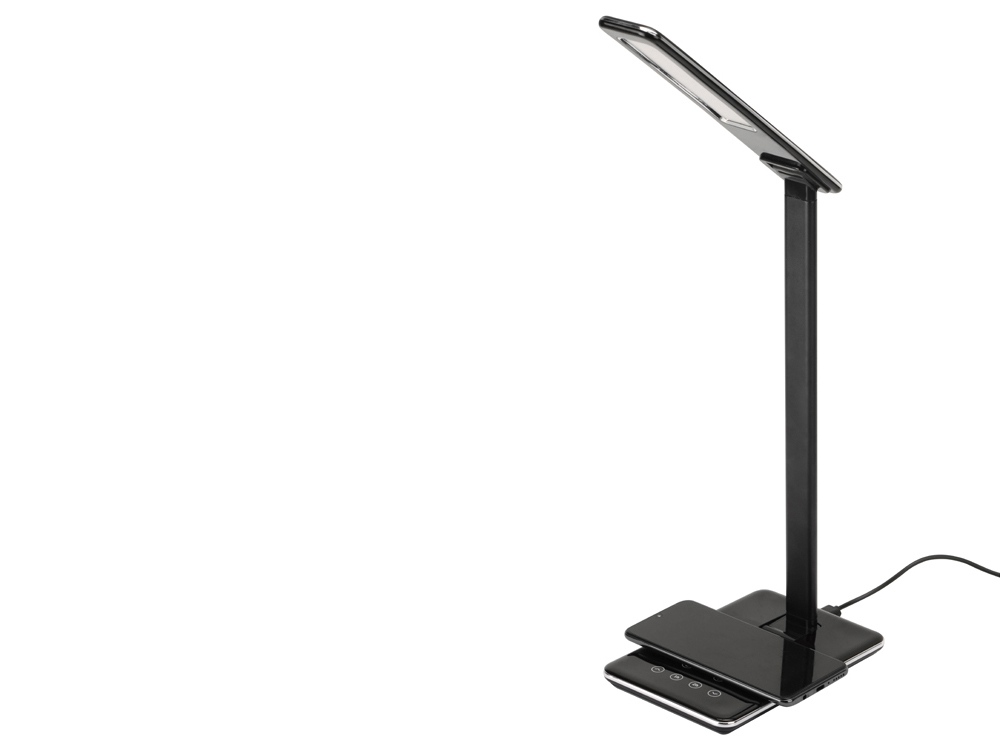 Умная функциональная настольная лампа с 3 режимами освещения: теплый желтый свет, нейтральный свет и холодный свет. Равномерно мягкий свет приятен и безопасен для глаз (отсутствует мерцание). На панели основания лампы можно также регулировать яркость и ставить таймер отключения (1 или 2 часа). В лампе предусмотрена беспроводная зарядка Qi-совместимы устройств, чтобы зарядить смартфон – просто разместите его в центре основания, и зарядка автоматически начнется. Выходной порт USB для проводной зарядки устройств. Благодаря продуманной конструкции лампа может принимать практически любые положения.