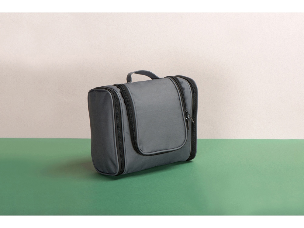 • Снабжен ручкой для удобства переноски и крючком, позволяющим подвесить несессер в ванной комнате гостиничного номера или любом другом месте