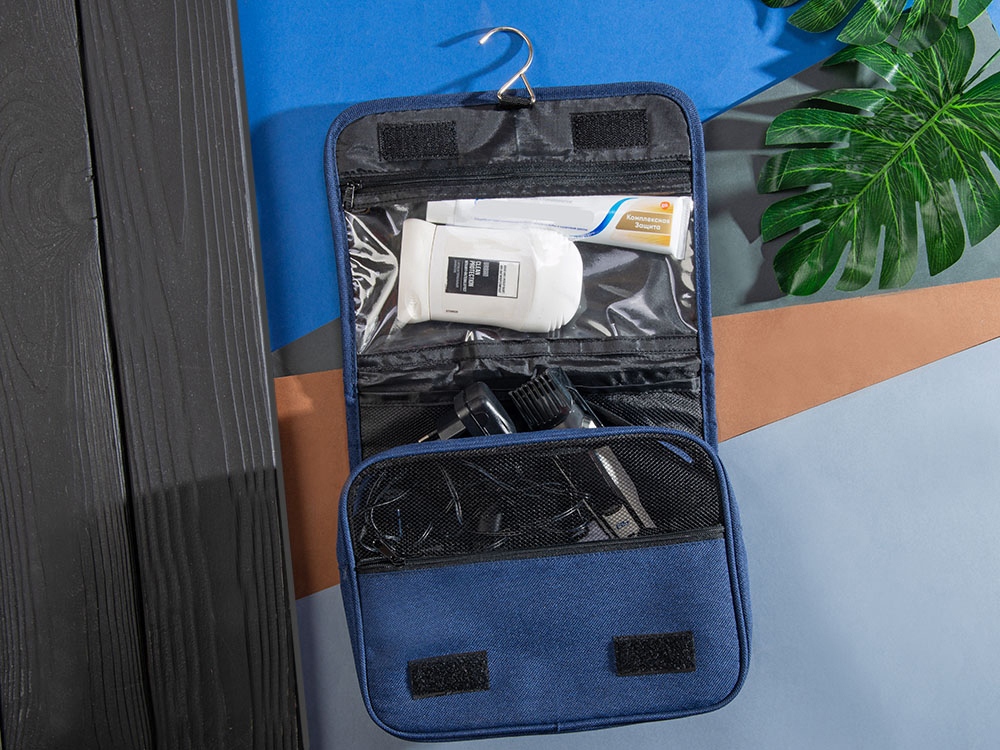 Несессер Planar оснащен металлическим крючком для подвешивания, который в сложенном виде убирается внутрь и не будет вам мешать. Для переноски несессер имеет ручку снаружи, а еще вы найдете плоский вместительный карман на его задней стороне. Клапан несессера закрывается на липучки и имеет три кармана — большой на молнии из прозрачного материала, который легко моется, даже в случае, если флакон изнутри разгерметизировался, и два из сетки, куда можно положить необходимые мелочи и которые удобнее использовать в висящем виде.