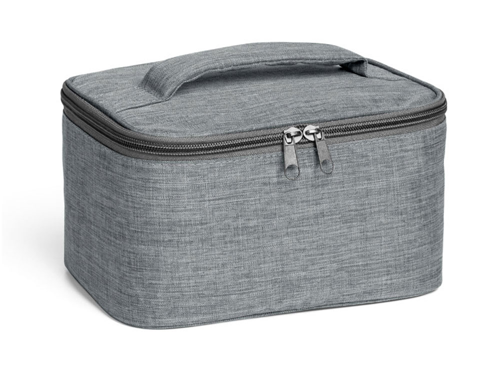 Несессер 300D высокой плотности с мягкой ручкой и двойной застежкой. Внутреннее отделение на подкладке и внутренний карман на молнии. 200 x 115 x 140 мм.