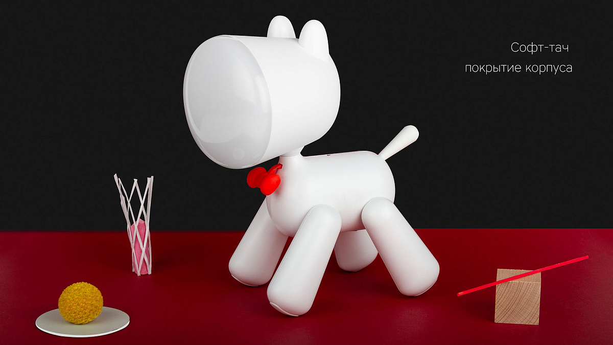 Особенности: уникальный дизайнерский светильник, софт-тач покрытие корпуса, до 10 часов работы от аккумулятора, два уровня яркости, теплый белый свет