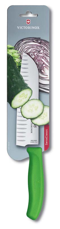 Нож сантоку VICTORINOX SwissClassic, рифлёное лезвие 17 см, зелёный, в картонном блистере можно заказать в нашей компании по самой доступной цене от 10 110 рублей.