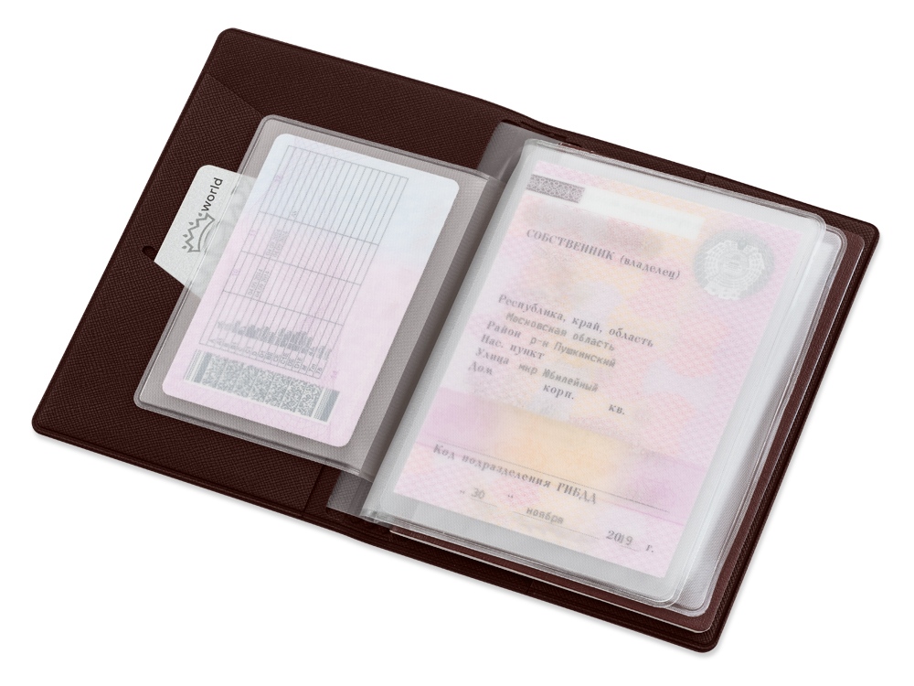 Внутренние вкладыши выполнены из пленки пвх и позволяют разместить: паспорт, свидетельство о регистрации тс, полис осаго, водительское удостоверение, также имеется кармашек для пластиковой карты.