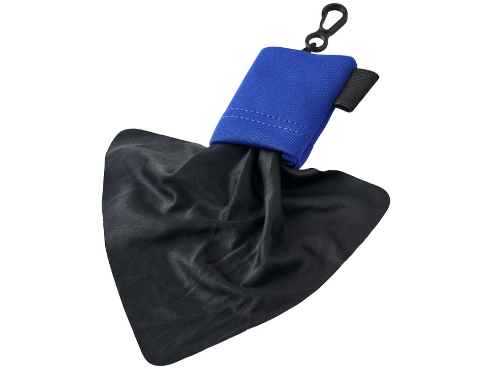 Очищающая салфетка Clear из микрофибры в чехле. Очищающая салфетка из микрофибры для протирания очков, мобильных телефонов, экранов компьютеров и многого другого. Упакована в чехол с карабином для удобной переноски. Ультратонкая микрофибра. 0,010.