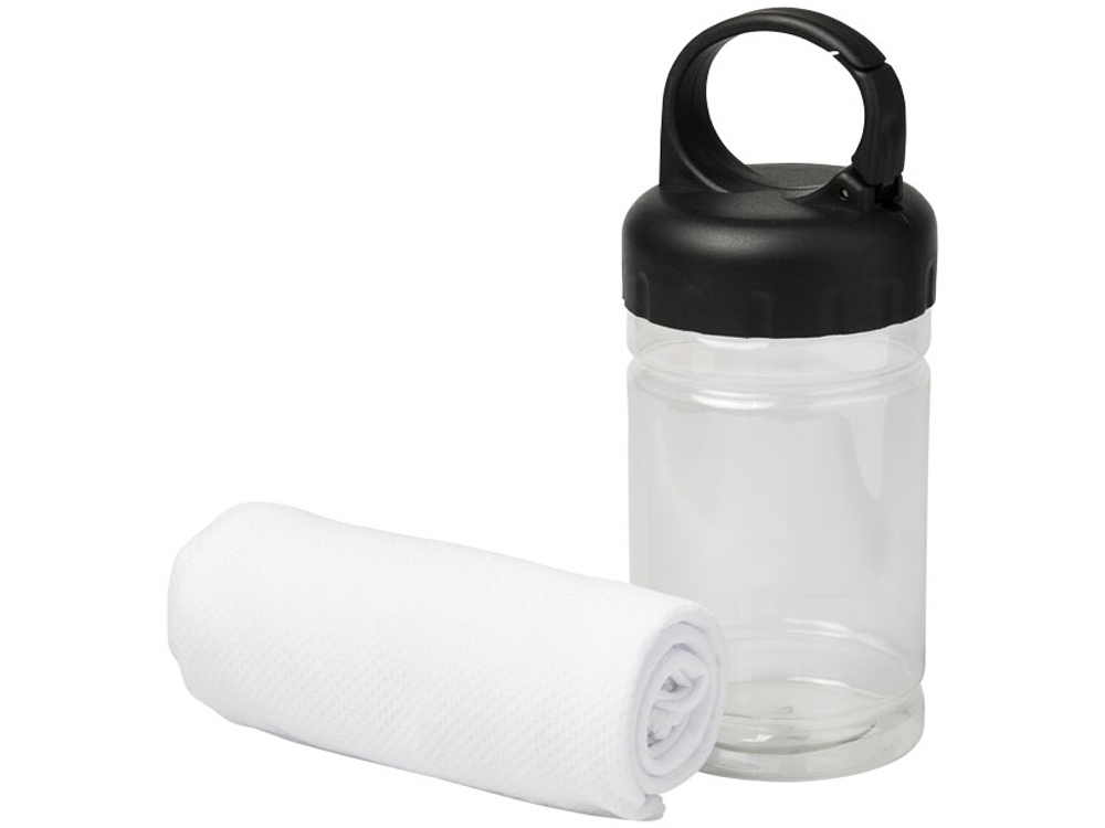 Охлаждающее полотенце Remy в ПЭТ-контейнере. Быстро впитывающее, быстро сохнущее и стираемое охлаждающее полотенце сохраняет прохладу во время тренировок или любых других занятий на свежем воздухе. Поставляется в ПЭТ-контейнере с ручкой и встроенным карабином для удобной переноски. Доступно в 5 ярких цветах. На контейнере изображен большой логотип, он также может быть и на самом охлаждающем полотенце. Размер: 30 x 80 см. PET. 0,096.