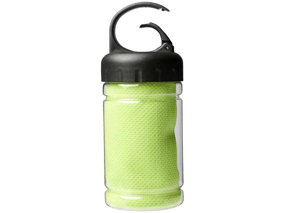 Охлаждающее полотенце Remy в ПЭТ-контейнере. Быстро впитывающее, быстро сохнущее и стираемое охлаждающее полотенце сохраняет прохладу во время тренировок или любых других занятий на свежем воздухе. Поставляется в ПЭТ-контейнере с ручкой и встроенным карабином для удобной переноски. Доступно в 5 ярких цветах. На контейнере изображен большой логотип, он также может быть и на самом охлаждающем полотенце. Размер: 30 x 80 см. PET. 0,096.