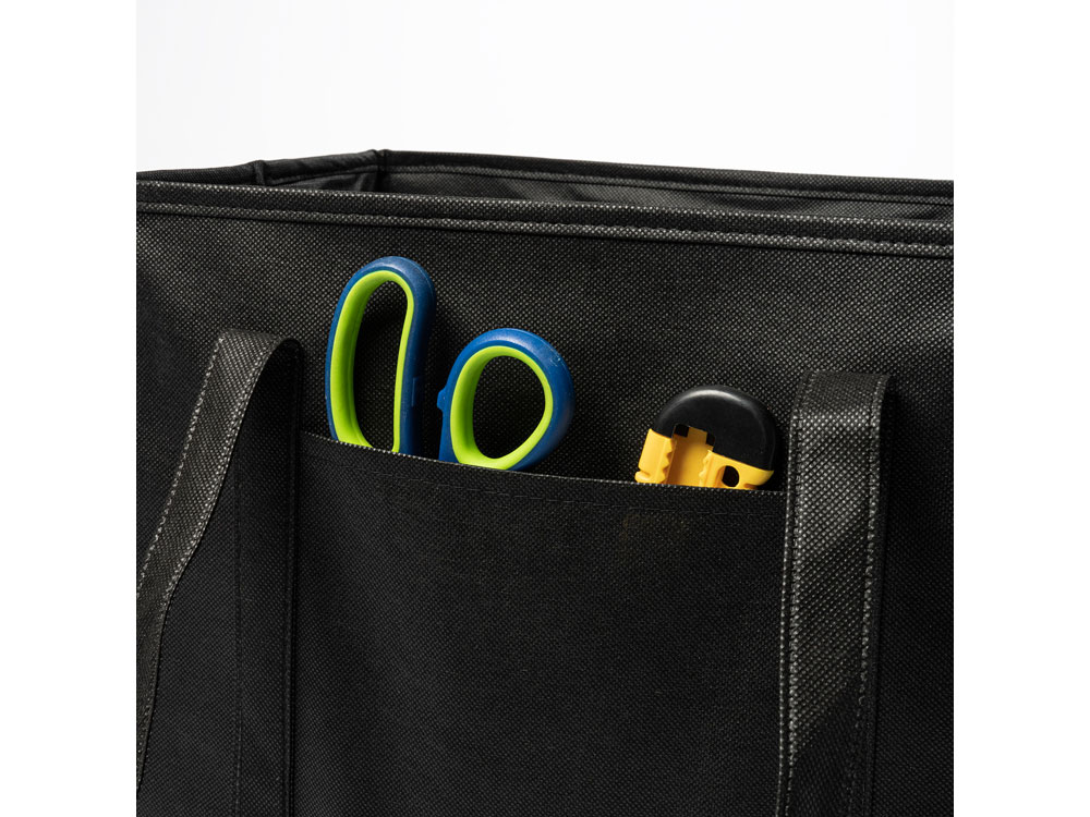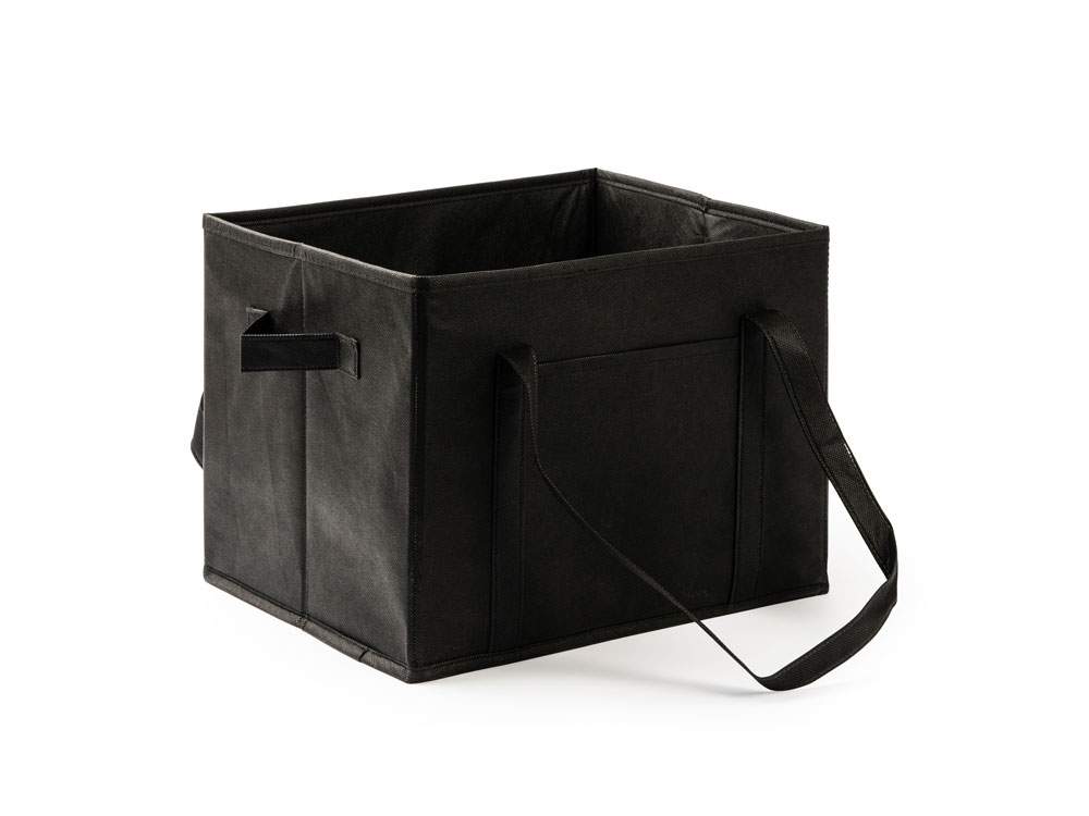 Органайзер для багажника автомобиля из прочного нетканого материала. Усиленные ручки для переноски, боковые ручки и передний карман. Жесткая основа.