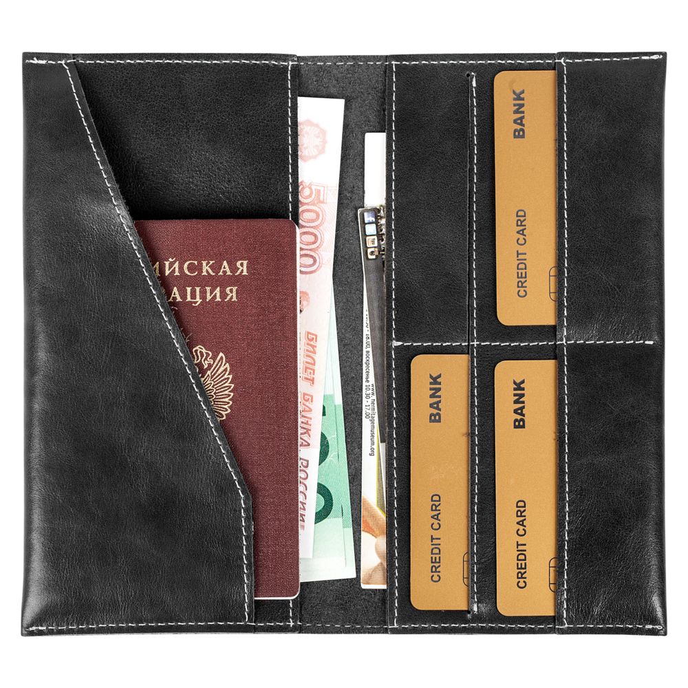 - Два больших отделения для купюр и документов