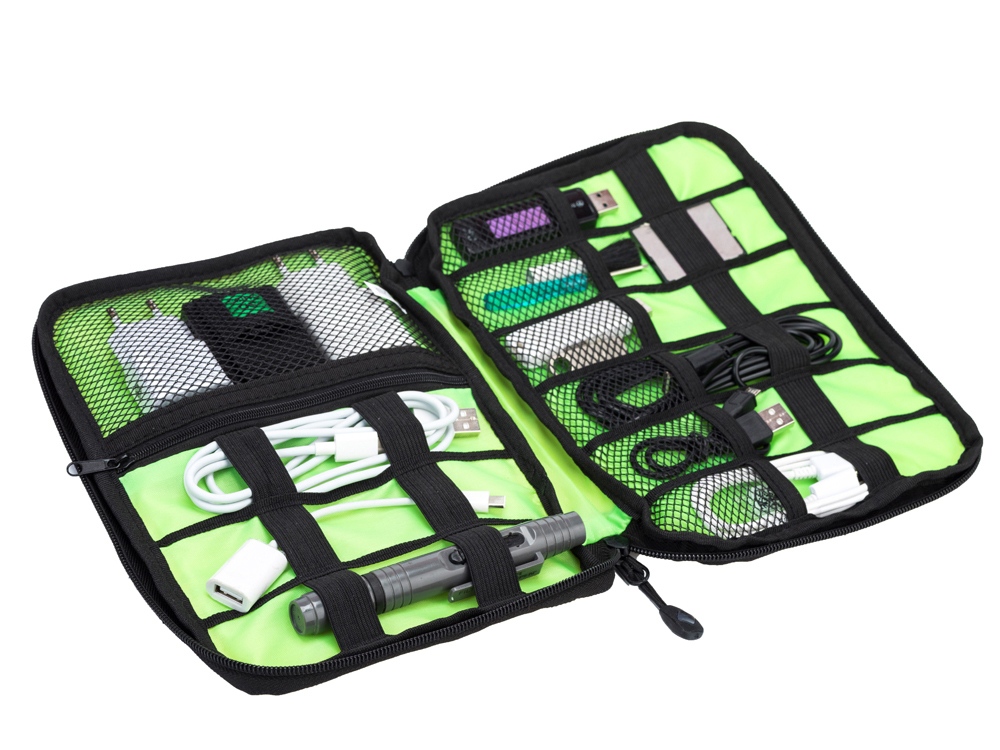 Органайзер для тех, кто любит порядок и хочет систематизировать хранение своей техники. Подходит для зарядных устройств, USB-флешек и других аксессуаров. Облегчит поиск и транспортировку необходимых комплектующих. Органайзер рассчитан минимум на 12 проводов, 6 флешек и ряд других аксессуаров. В модели есть отдельный карман для жесткого диска или внешнего аккумулятора.