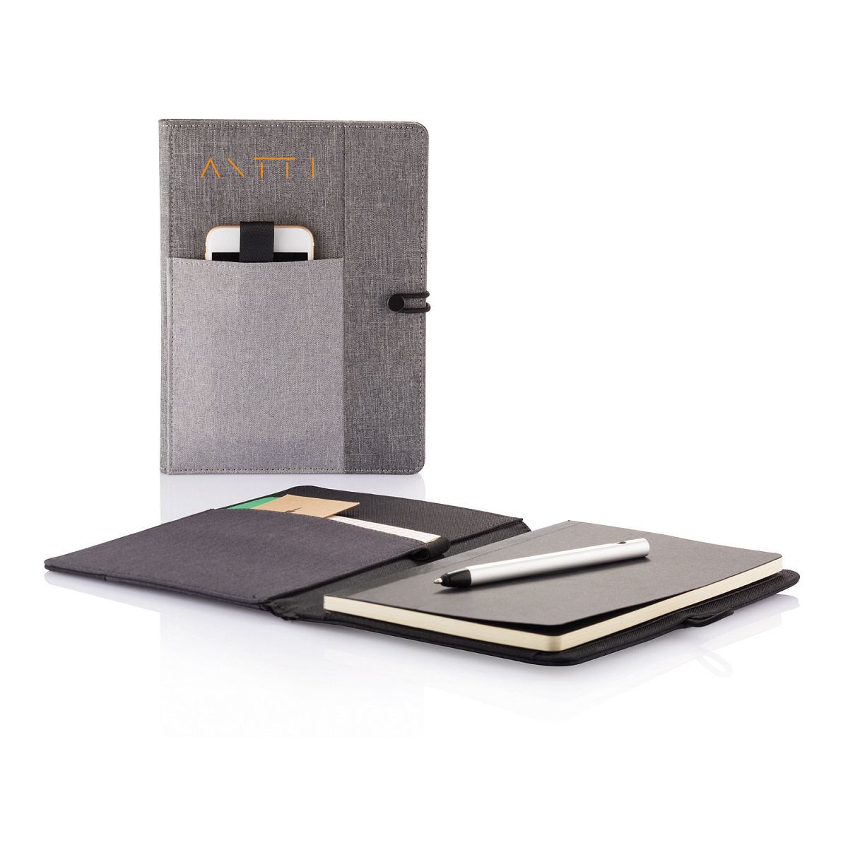 Органайзер Kyoto с внутренними и внешними отделениями для телефона, ручки, блокнота и прочих небольших предметов. Поставляется со съемным блокнотом на 64 страницы, белая бумага плотностью 70 г/м2. Зарегистрированный дизайн ® Длина 2,5 см., ширина 16 см., высота 22 см., диаметр 0 см.