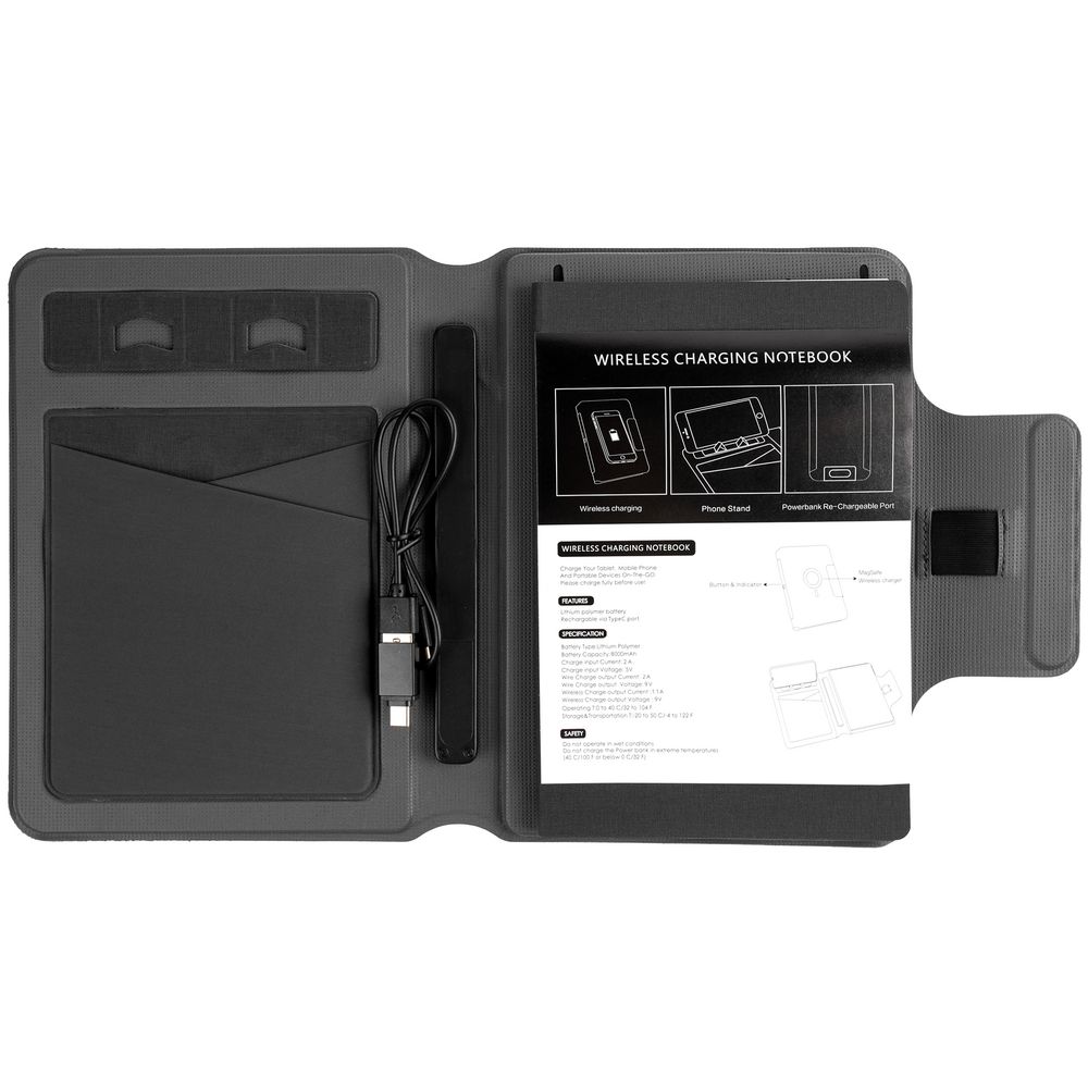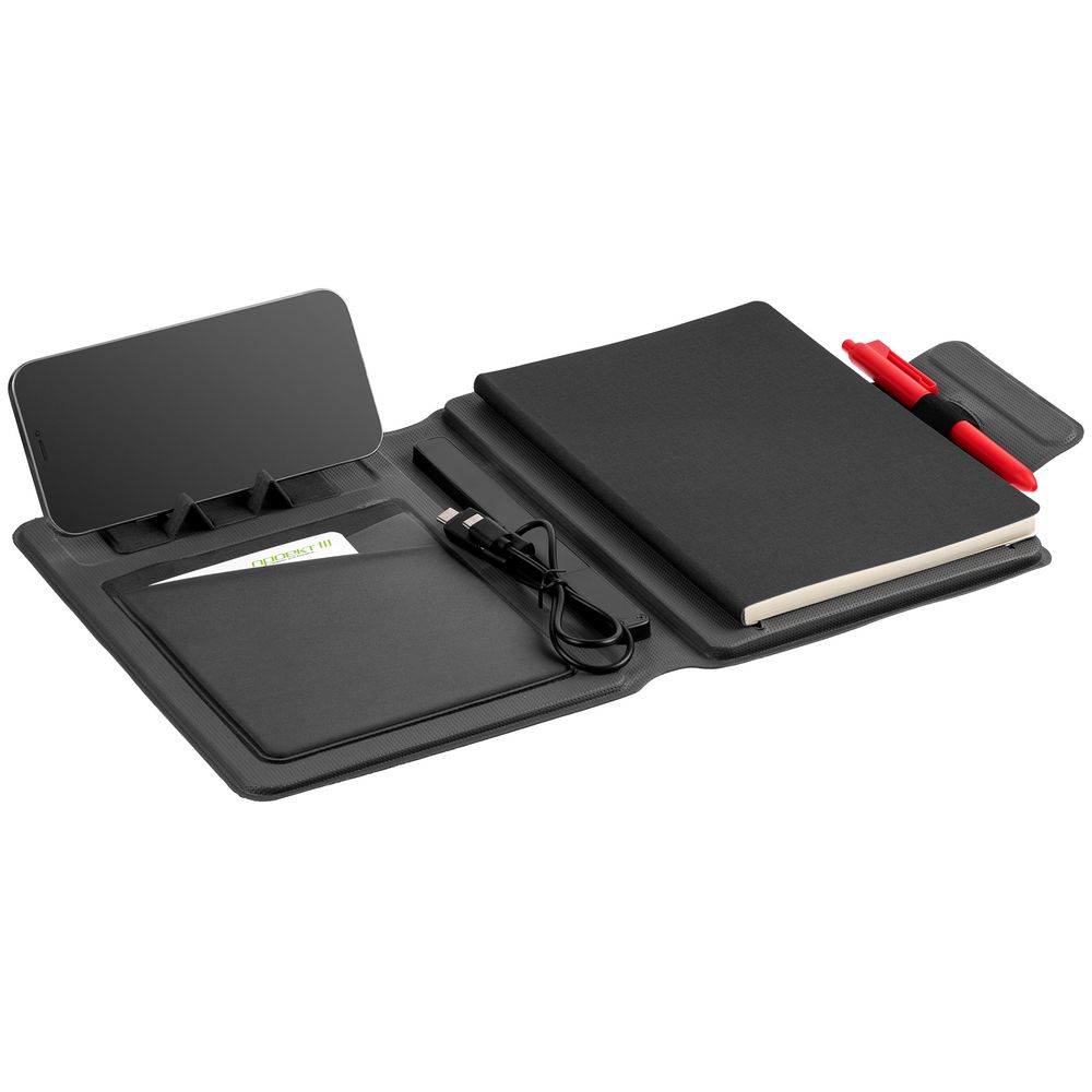 Органайзер с блокнотом и аккумулятором Oiro, черный можно заказать в нашей компании по самой доступной цене от 5 900 рублей.