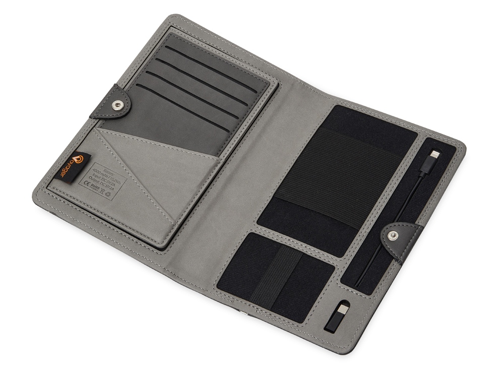 Органайзер с внешним аккумулятором выполнен из PU-кожи – прочного, устойчивого к механическим нагрузкам материала. Выглядит элегантно и солидно, имеет мягкую текстуру, приятную на ощупь. Компактный стильный аксессуар удобно брать с собой на работу, в командировку, в путешествия. Это прекрасный подарок для любого человека, живущего в динамичном ритме.