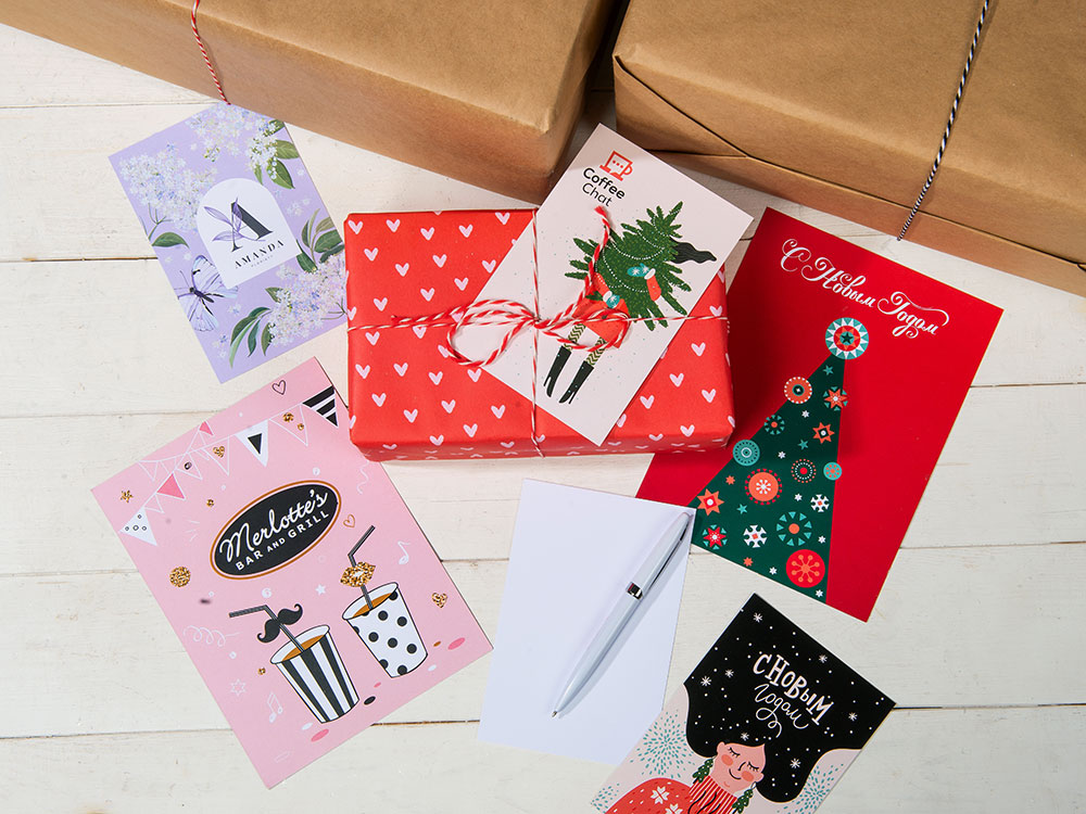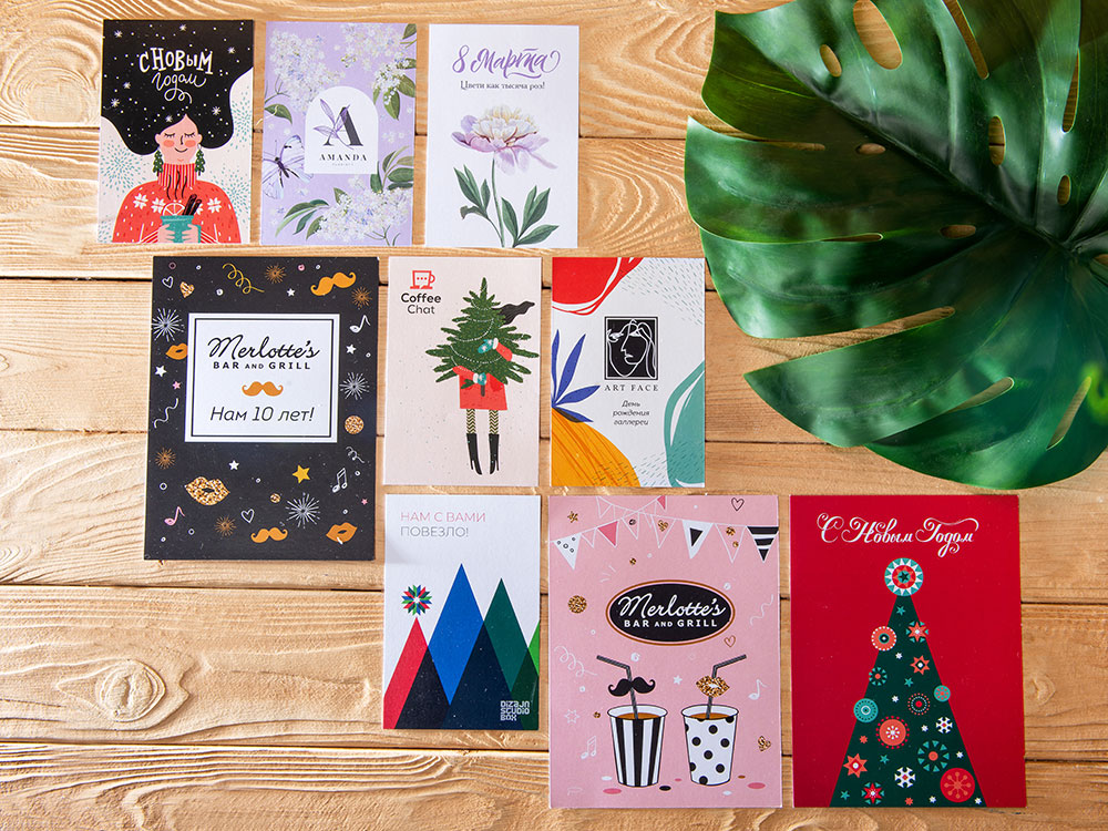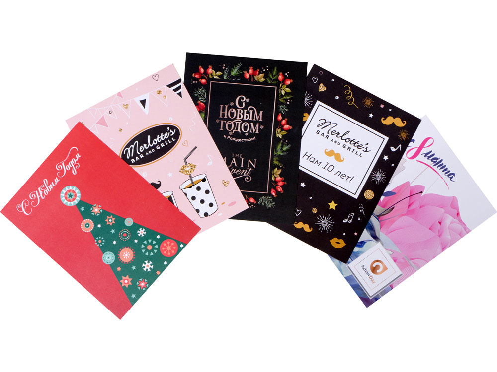 Открытка под запечатку можно заказать в нашей компании по самой доступной цене от 32.44 рублей.