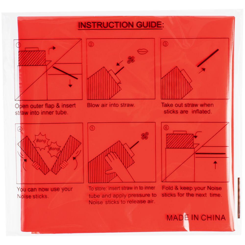 Палки-стучалки надуваются и сдуваются через воздушный клапан на короткой стороне с помощью трубочки, которая идет в комплекте.