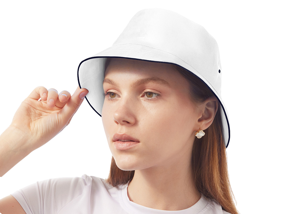 Панама из хлопкового твила с контрастным кантом и контрастными вентиляционными отверстиями.