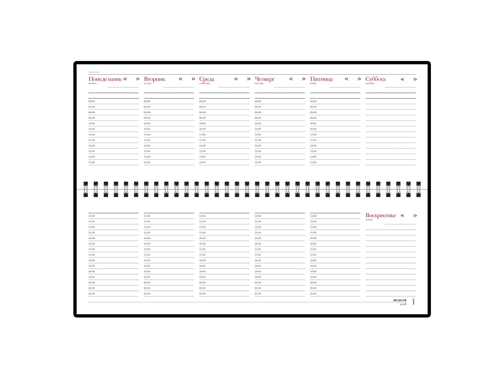 Недатированный планинг на гребне, цвет черный, твердый переплет, 128 страниц. Плотность бумаги 70 грамм высшего сорта. Печать в 2 краски.