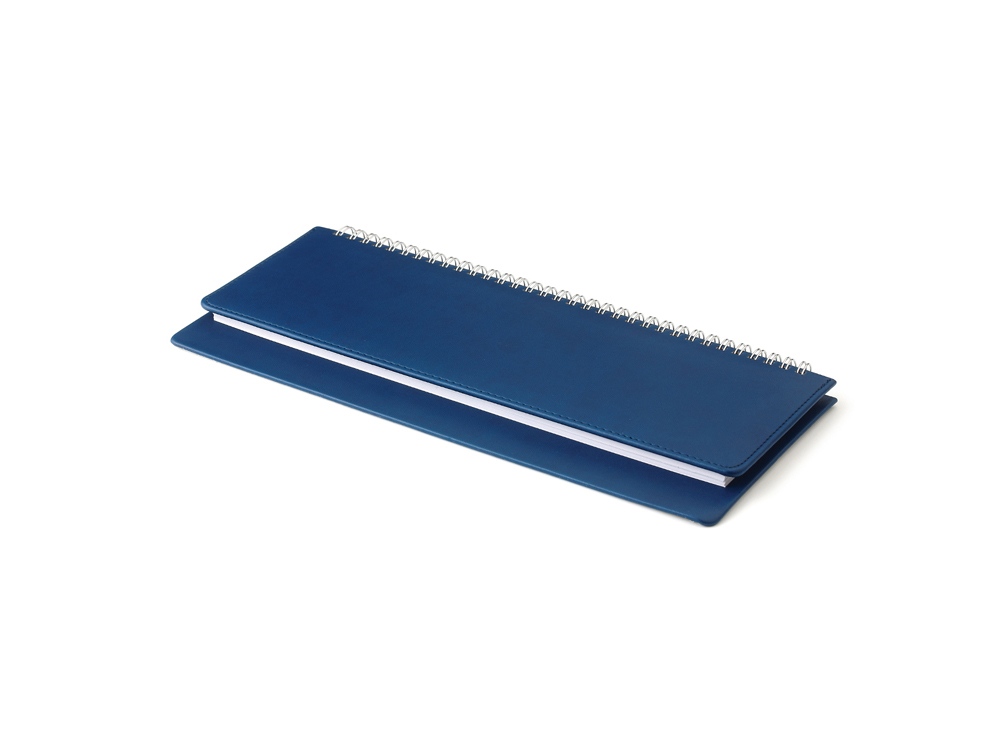 Недатированный планинг выпускается размером 305*130 мм и содержит 128 страниц (блок 292 х100 мм). Для них выбрана высококачественная белая бумага плотностью 70 грамм. Разворот представляет собой разметку на 7 дней недели с графами с указанием времени. Месяц и день недели указаны на русском и английском языках. Первые 15 страниц содержат справочные сведения из различных областей на русском языке. Крепление листов на открытом гребне способствует быстрому переходу по страницам. Современная, практичная обложка из приятного на ощупь материала с легким прорезиненным эффектом хорошо подходит для тиснения. Декоративная прострочка нитью в тон подчеркивает закругленную форму обложки.