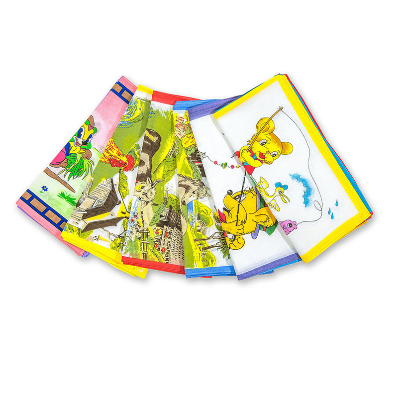 Платочки для самых маленьких — из самой мягкой ткани, с изображениями весёлых персонажей.