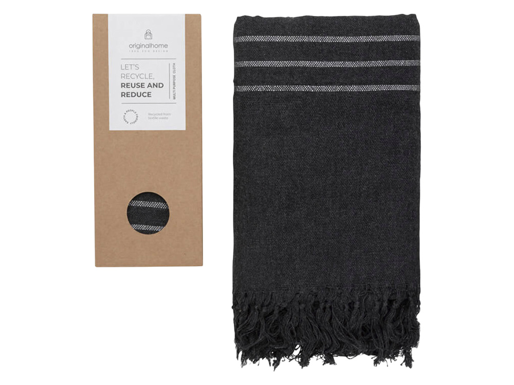Этот универсальное изделие — достаточно плотное, чтобы использовать его как плед или полотенце, тонкое настолько, чтобы носить как шарф, и компактное, чтобы брать с собой куда угодно. Сделанное из 100% переработанных материалов текстильной отрасли в Бангладеше и сотканное на традиционной ручной ткацкой раме, оно способствует развитию женского предпринимательства. Идеальный социальный подарок, который вносит вклад как в устойчивое, так и в социально ответственное дело. Размер: 85 × 175 см. Состав: 70% переработанного хлопка, 25% переработанного полиэстера, 5% других переработанных волокон.