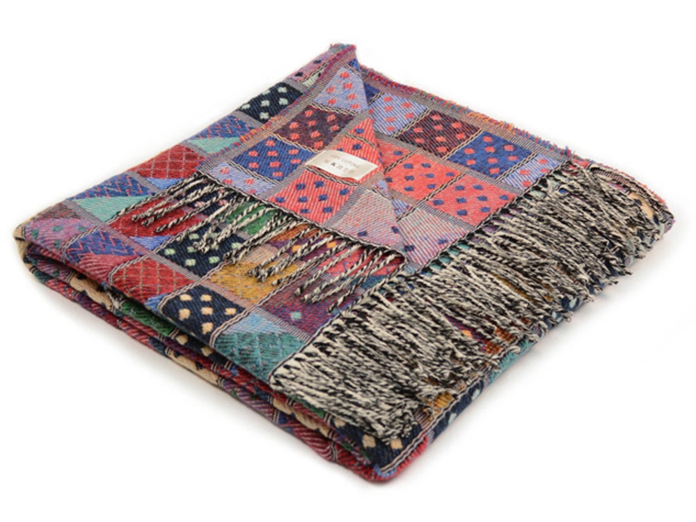 • Плед в стиле пэчворк украшен бахромой, оригинальный дизайн органично впишется в интерьер и станет стильным украшением вашего дома. Постелите плед на диван или на кровать, возьмите с собой на дачу или используйте плед-покрывало в кресле-качалке.