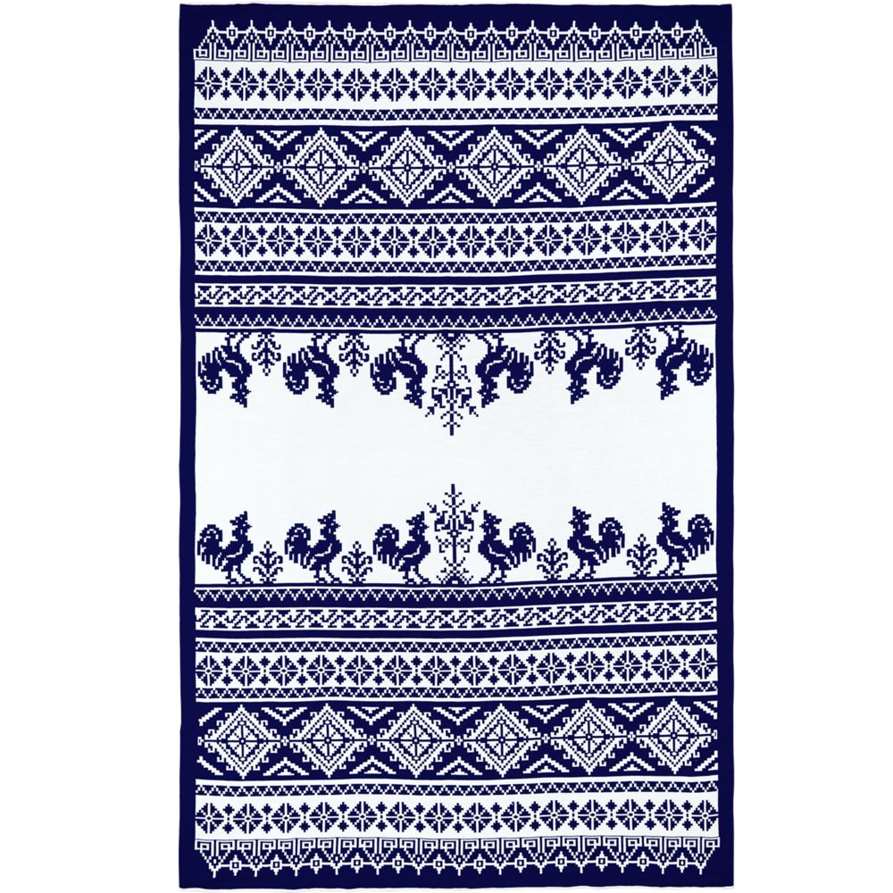 Модель: плед жаккардовой вязки, гладкая поверхность. Вязание в 2 цвета.