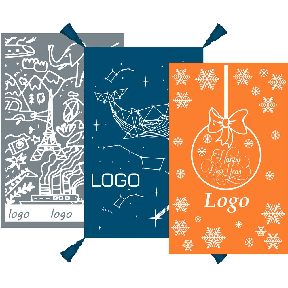 Плед с вывязанным логотипом и индивидуальным рисунком в фирменной цветовой гамме.