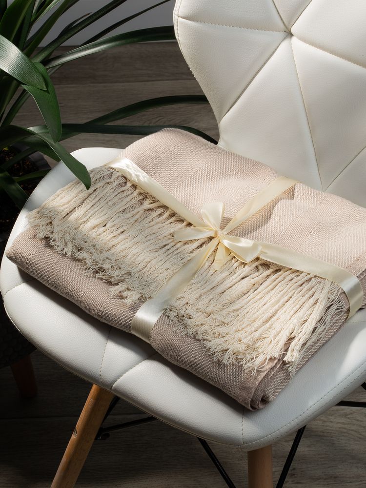 Тканый плед «Сенеж» ТМ Vladi — это натуральные оттенки, комфорт в использовании и уют в доме.