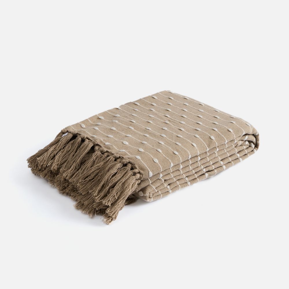 Фактурный узор с элементами счетной вышивки, а также спокойные природные оттенки пледа Shimla создадут приятное визуальное впечатление наряду с комфортными тактильными ощущениями благодаря натуральной основе пледа.