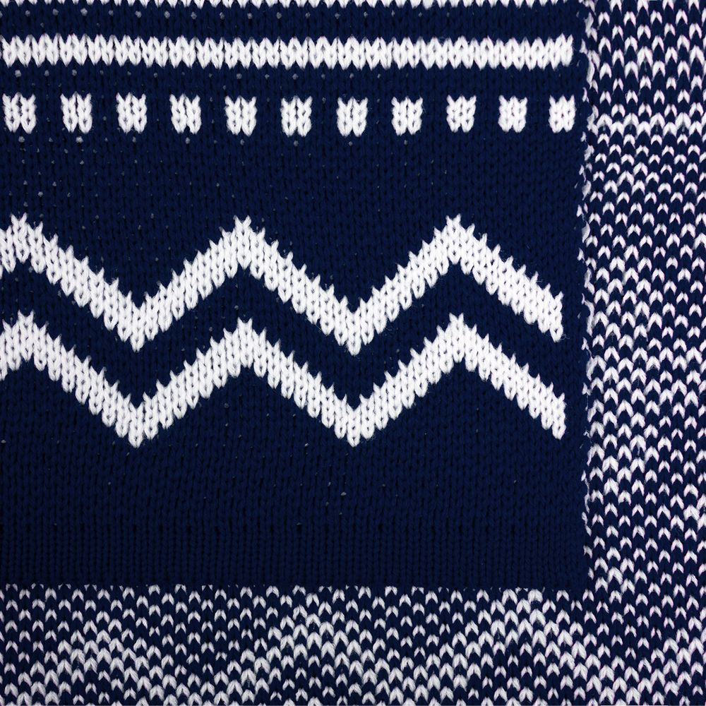 Плед с вывязанным логотипом и индивидуальным рисунком в фирменной цветовой гамме.