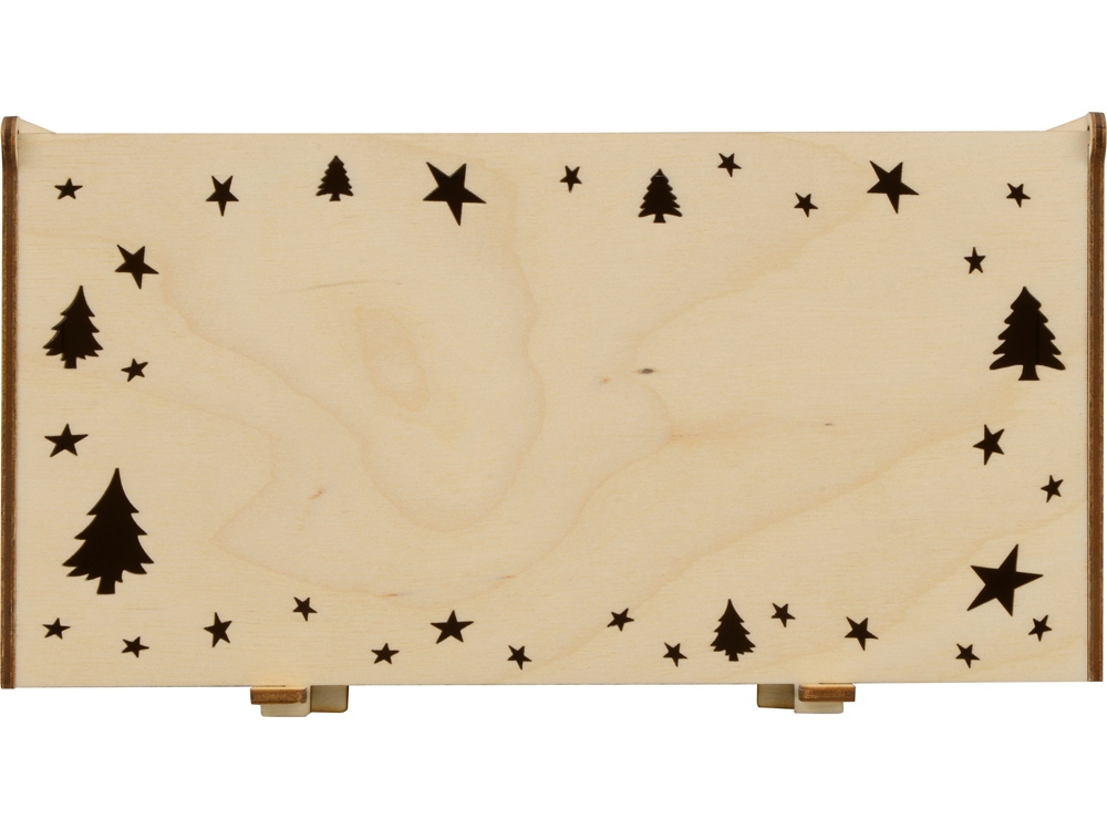 Подарочная коробка в виде небольшой шкатулки подходит для нанесения информации или логотипа на крышке. Орнамент в виде звездочек на крышке украсит ваш подарок, а если внутрь положить несколько электронных свечей, то тени от света свечей оставят причудливые узоры на стенах и потолке. Оригинальная подарочная упаковка Шкатулка - отлично подойдет как для новогодних подарков, так и для презентов по любому другому поводу.