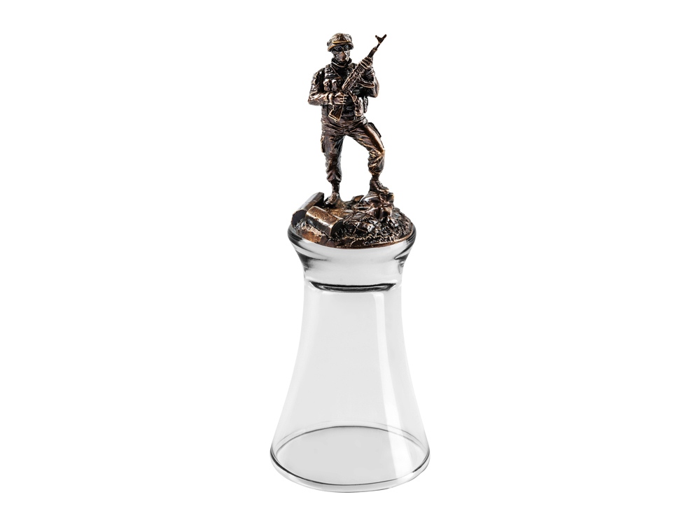 Подарочная стопка-чарка армейская с литой объемной скульптурной композицией. Пока не выпито содержимое, поставить будет нельзя! Скульптурная композиция изготовлена в технике мелкой пластики с высочайшей степенью детализации. Материал скульптурной композиции бронза. Художественное литье, пайка, полировка. Авторская ручная работа.