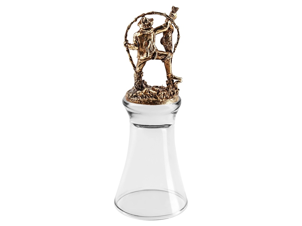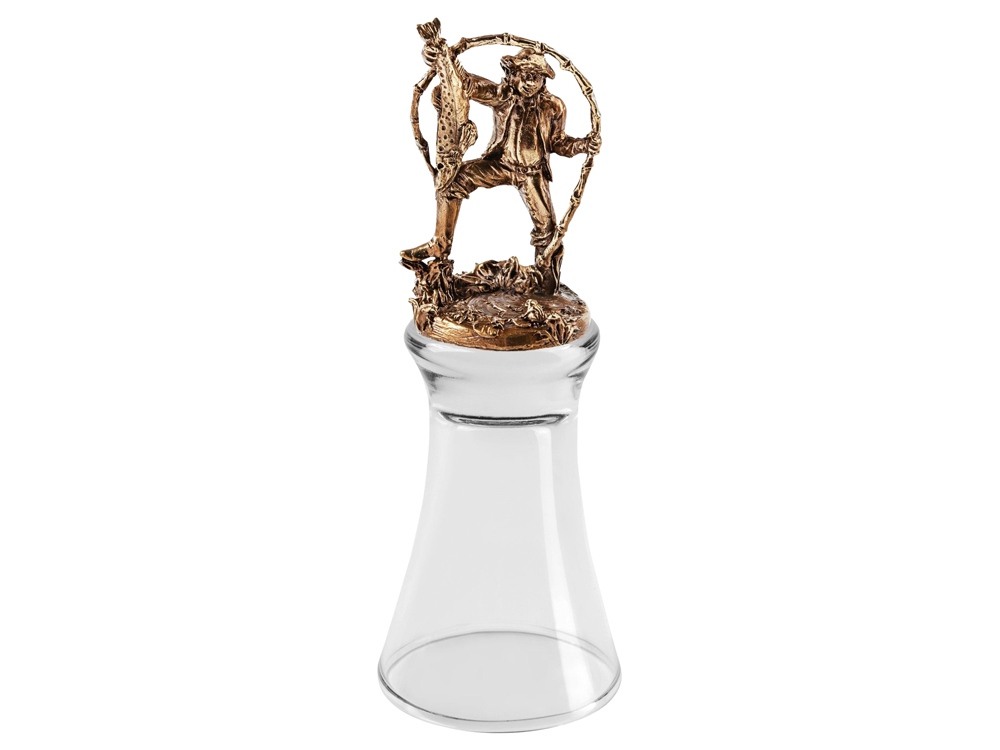 Подарочная стопка-чарка рыбацкая с литой объемной скульптурной композицией 'Рыбак с уловом'. Пока не выпито содержимое, поставить будет нельзя! Скульптурная композиция изготовлена в технике мелкой пластики с высочайшей степенью детализации. Материал скульптурной композиции бронза. Художественное литье, пайка, полировка. Авторская ручная работа.