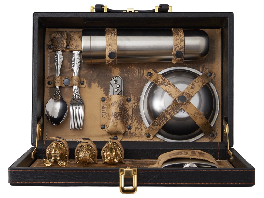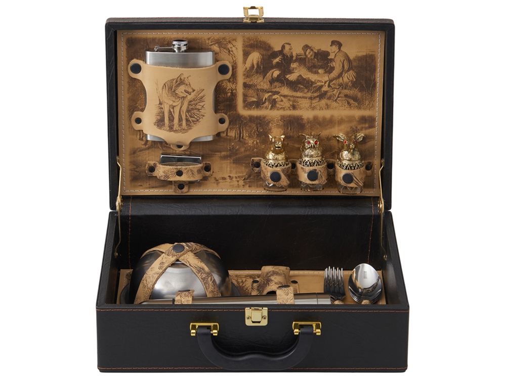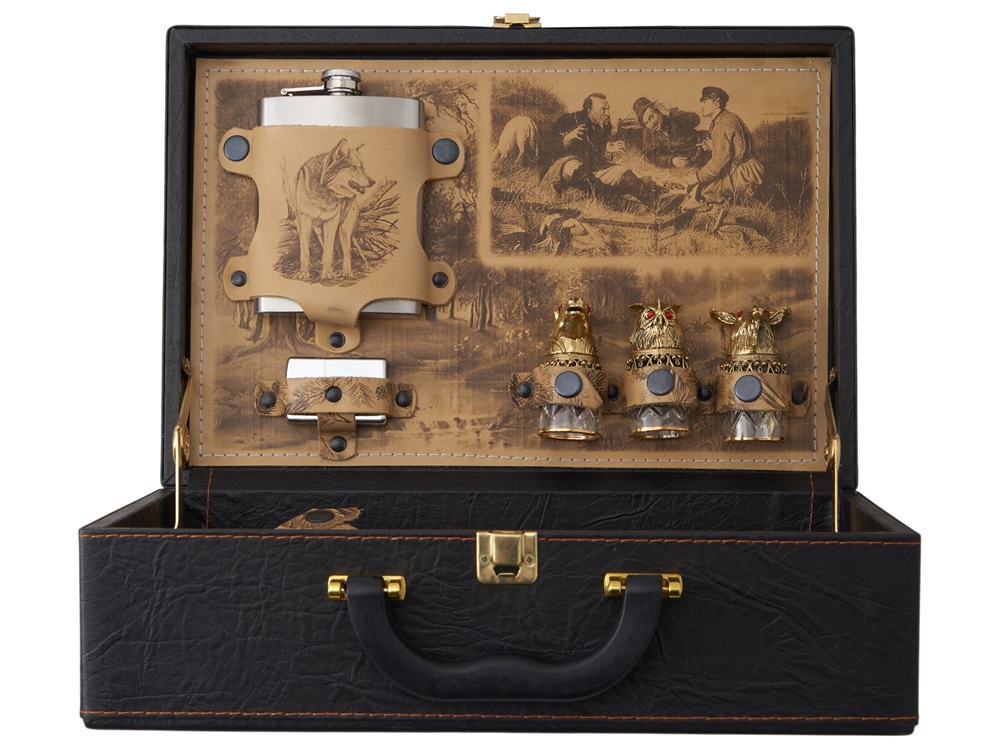 Каждое изделие уникально, так как художественное выжигание может отличаться от представленного на фото, что придаёт набору особую индивидуальность. Все аксессуары надежно крепятся к кейсу кожаными ремешками на кнопке, обеспечивая удобство транспортировки и сохранность содержимого.