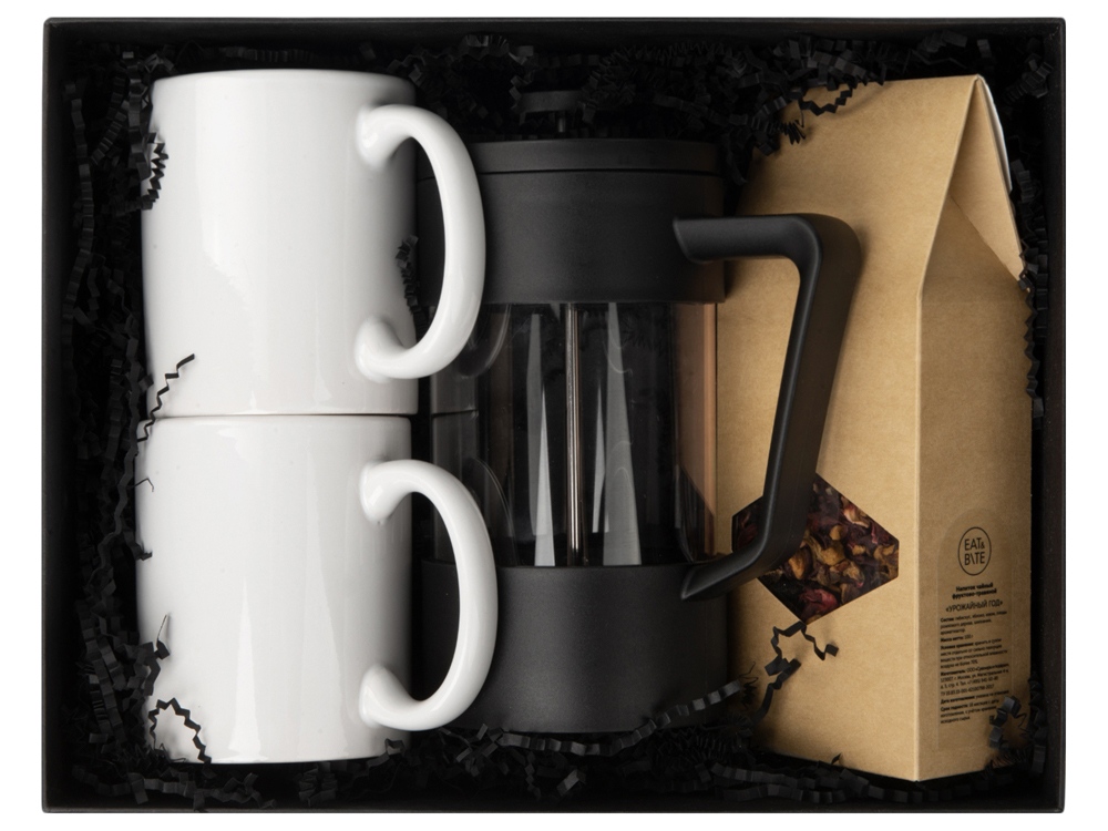 Комплектность: кружка-2шт, френч-пресс, чай, наполнитель, коробка