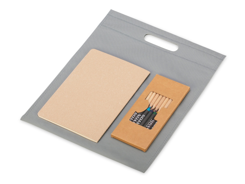 Шоппер из нетканого материала одновременно является упаковкой для набора, решая этот вопрос за вас.