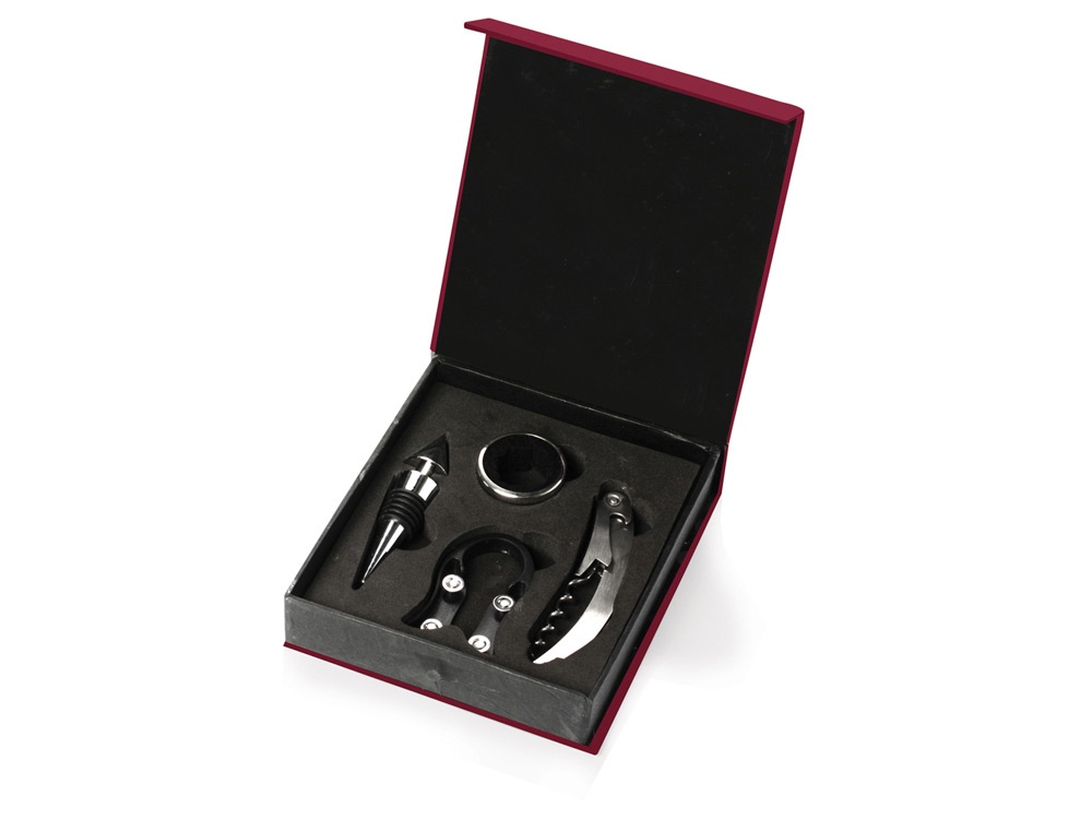 В комплекте: штопор, пробка, кольцо-каплеуловитель, нож для срезания фольги.